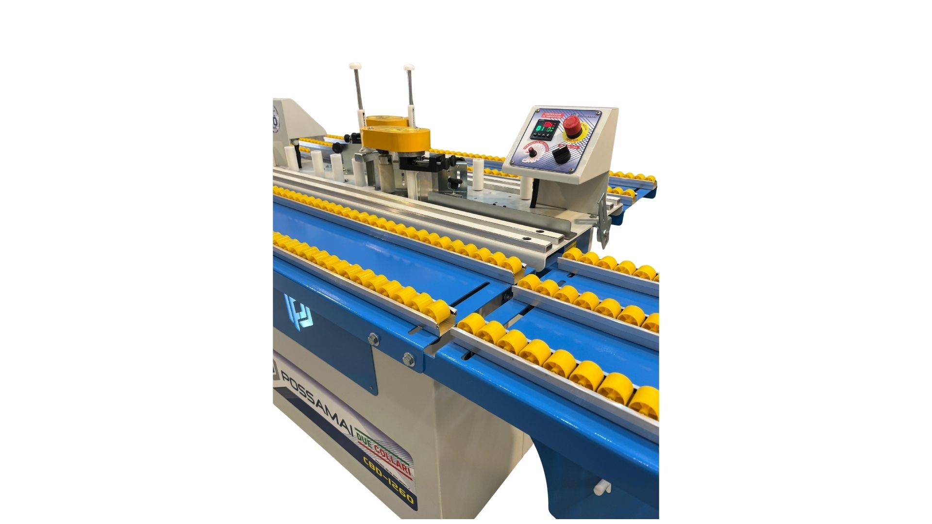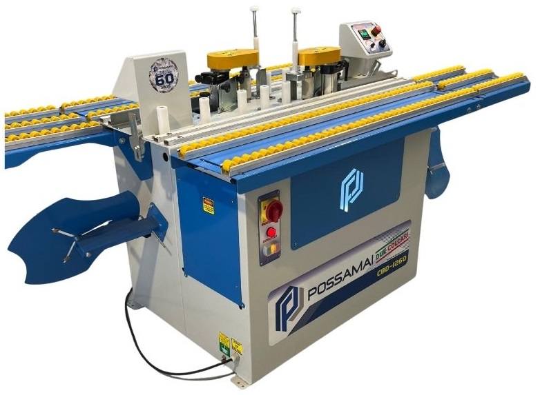 A coladeira de fita de borda duplo coleiro modelo CBD-1260 “POSSAMAI”, proporciona uma colagem perfeita em MDF, compensados, aglomerados e madeiras em geral. Este modelo é equipado com dois coleiros para uso simultâneo possibilitando o dobro da produção diária, um sistema de corte manual, sendo indicado para corte de fitas finas em PVC. Estrutura robusta e construída com elevado conceito de qualidade, aliado a produtividade e baixo custo. Os coleiros da CBD-1260 foram desenvolvidos para trabalhar com uma temperatura em torno de 130 a 160 graus, usando a cola Kleiberit marfin referência 788 ou similar. O sistema mecânico é acionado por um moto-redutor de 24 volts.