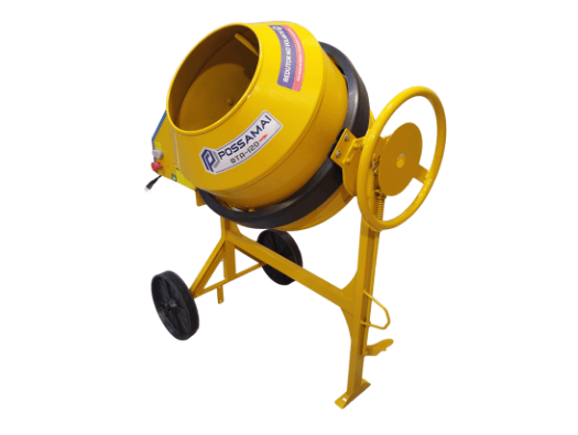 As betoneiras “POSSAMAI” modelos BTA-120, BTA-160, BTA-245, BTA-400, foram projetadas com elevado conceito de qualidade aliado a produtividade com baixo custo atendendo os requisitos da norma de segurança ABNT NBR 16329:2014. Sua estrutura é constituída de chapas de aço de acordo com a necessidade que o produto requer e com a finalidade de atender o mercado da construção civil em geral. Esse equipamento foi desenvolvido para uso exclusivo na mistura de concreto e argamassa em obras da construção civil, vedado a sua utilização para outras atividades ou trabalho. Nossa Betoneira de 120L BTA-120 vem com redutor de esforço no volante.
